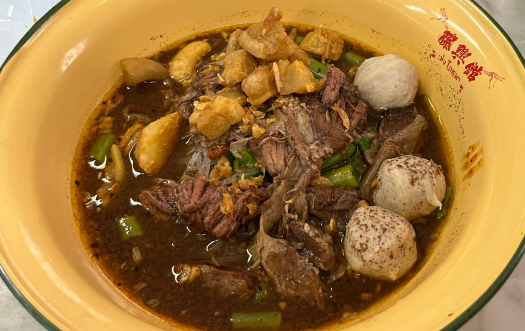 - เครื่องแน่นจัดเต็ม มีทั้งหมูสด หมูตุ๋นเนื้อนุ่มละลายในปาก ตับลวกสุกกำลังดี และลูกชิ้นหมูเด้งๆ และที่ขาดไม่ได้คือ “กากหมูเจียว” กรอบๆ ที่ช่วยชูรสชาติให้ฟินขึ้นไปอีกระดับ
