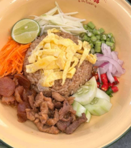 - ข้าวคลุกกะปิ ครบรสในจานเดียว ศิลปะบนจานอาหารต้องยกให้ “ข้าวคลุกกะปิ” เมนูที่รวมทุกรสชาติไว้ด้วยกันอย่างลงตัว ข้าวสวยผัดกะปิหอมๆ เค็มกำลังดี ตัดรสด้วย “หมูหวาน” เนื้อนุ่ม เสริมทัพด้วยเครื่องเคียงแน่นๆ ทั้งกุ้งแห้งทอด ไข่เจียวฝอย หอมแดง พริกขี้หนูซอย และมะม่วงเปรี้ยวสับ เมื่อคลุกทุกอย่างรวมกันแล้วตักเข้าปาก จะได้รสสัมผัสที่หลากหลาย อร่อยกลมกล่อมจนคำสุดท้าย