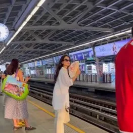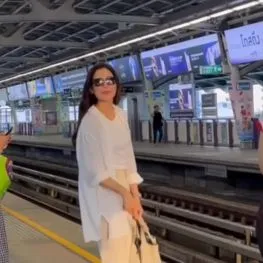 สิ่งที่สะดุดตาที่สุดคงหนีไม่พ้นลุคของเธอในชุดลำลองสีขาวที่ดูสบายตาและทะมัดทะแมง แม้จะเป็นการแต่งตัวที่เรียบง่ายเพื่อความคล่องตัวในการเดินทาง แต่ความสวยระดับนางเอกและการดูแลตัวเองที่ดียังคงโดดเด่นสะดุดตา และเป็นภาพที่หาดูได้ยากจริงๆ