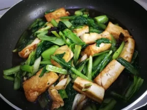 • วัตถุดิบ: เต้าหู้ขาว, ผักกาดกวางตุ้งไต้หวัน, ขิงแผ่น, ต้นหอม, น้ำมันมะกอก