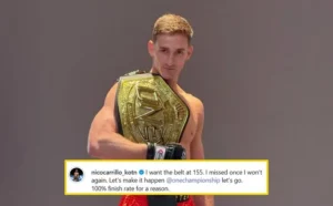 ผมต้องการเข็มขัดรุ่น 155 ป. ผมเคยทำพลาดมาแล้วครั้งหนึ่ง ผมจะไม่ยอมให้มันเกิดขึ้นอีก มาทำให้มันเกิดขึ้นจริงกันเถอะ @onechampionship ไปลุยกันเลย สถิติปิดเกม 100% มีเหตุผลของมันอยู่แล้ว”