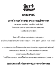 สรุปเหตุการณ์ OHANA ประกาศพนักงานพ้นสภาพ